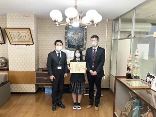 税に関する高校生の作文の表彰式が行われ、1年生の松井さんが千葉東税務署長賞を受賞しました。