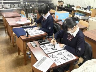 本校の書道同好会では、放課後に書道室で活動をしています。