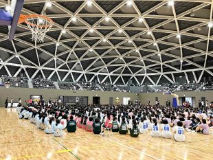YohaSアリーナにて、4年ぶりに3学年合同の体育大会が実施されました。