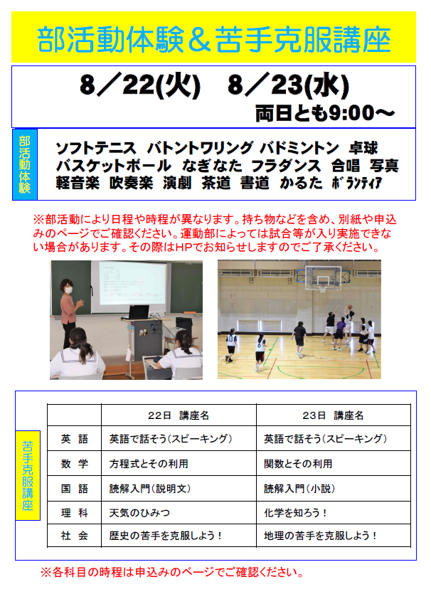 完全予約制となりますので、お気を付けください。たくさんのご参加、学校一同お待ちしております。