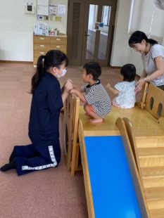 「こいっくべん」は千葉市中央区弁天町の地域の子どもや保護者の方が自由に参加できる施設です。 夏季休業中に3回の開室日があり、3年生がボランティアをしました。 子ども達はすぐに高校生と慣れて、一緒にスタンプ遊びや滑り台などを楽しみました。