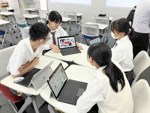 1年生の授業ではパワーポイントで作成した自己紹介のグループ発表の授業が行われています。