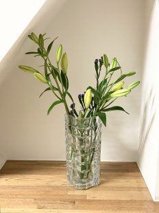 11月はヒペリカム、ユリ、スターチスの生け花が玄関に飾られています。