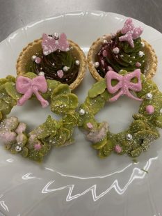 さつまいものタルトツリーとコーンフレークのリースを作りました。