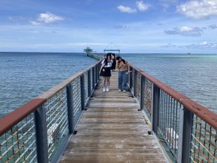 ボートでイルカウォッチングをしたり、ビーチで遊んだりしました。
