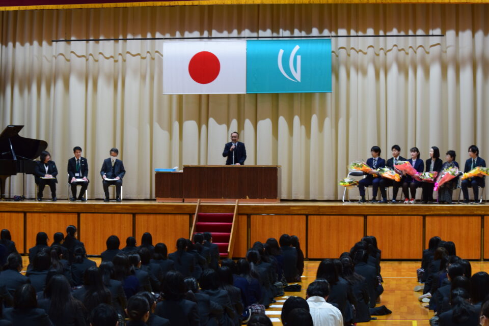 国公立大学や難関私立大学に合格した6名の生徒の表彰式が行われました。