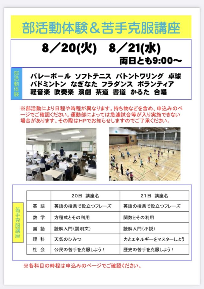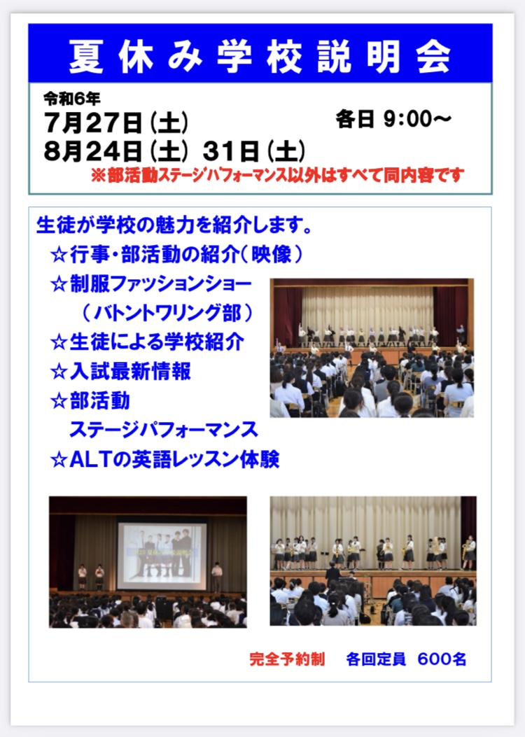 完全予約制となりますので、お気を付けください。たくさんのご参加、学校一同お待ちしております。
