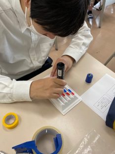 「保育教材を作ってみよう」という講座で、発泡トレーとビニール袋を使った車を作りました。