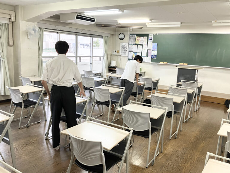 9月10日(日) 本校が模擬試験の会場になります。男子生徒が設営のお手伝いをしてくれました。 -