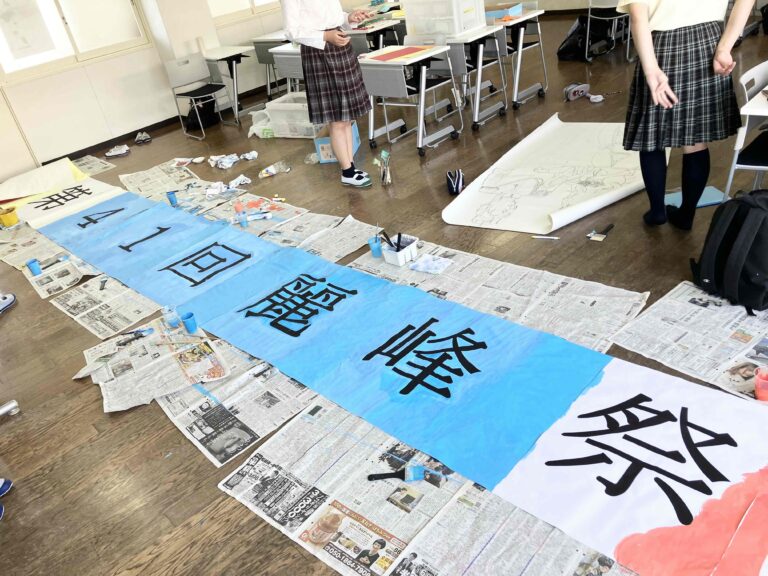 美術部では、夏休み中から麗峰祭の看板づくりに取り組んでいます。 -