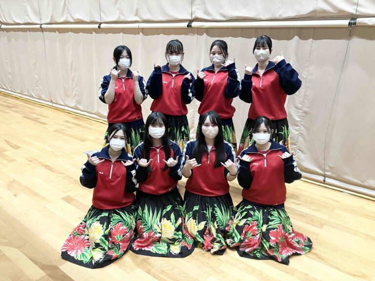 フラダンス同好会ではフラガールズ甲子園を目標に活動を行っています。 -
